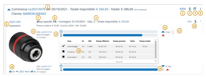 16 Matita per modificare o eliminare l'OdL. La matita compare solo quando le fasi non sono state assegnate ai macchinari